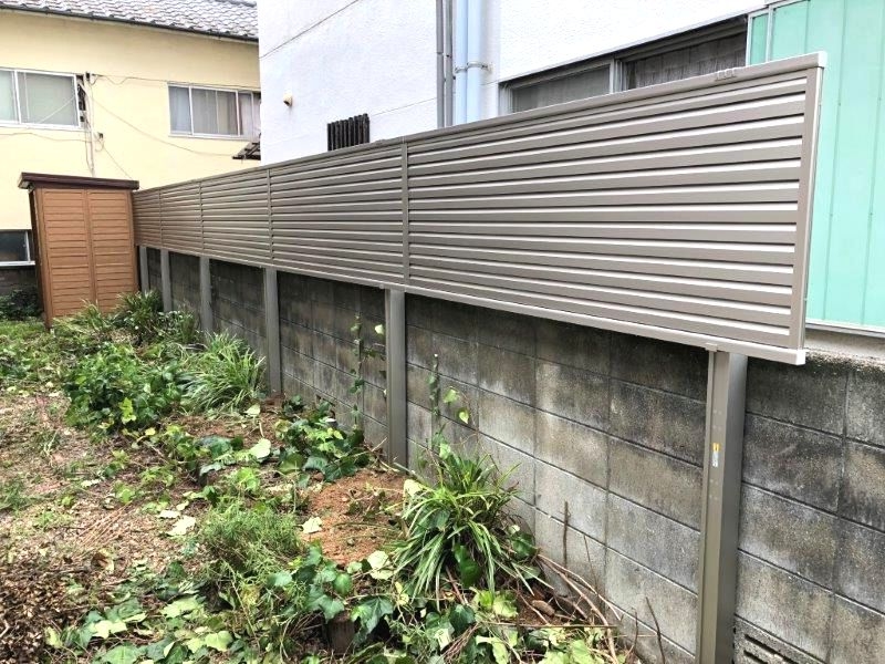 ブロック塀に目隠しフェンスを後付けして美観、安全性アップ横山鉄工所。