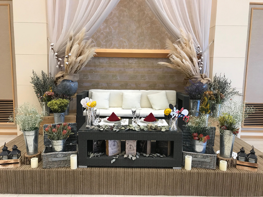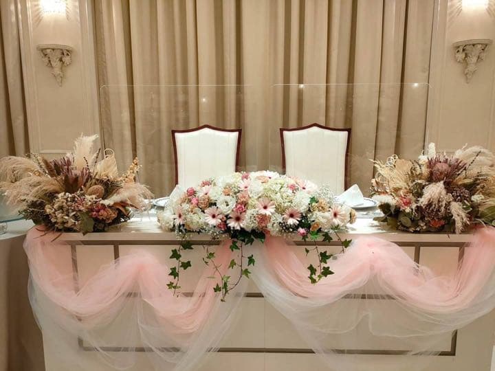 結婚式 高砂装花 パンパスグラス等ドライフラワ。