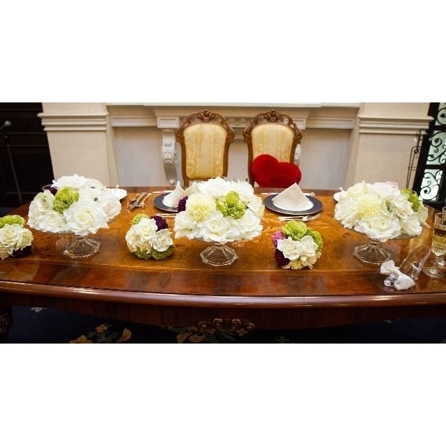 ◇ナチュラル ホワイト&グリーン 90cm テーブル装花◇ウエディング メインテーブル 高砂 結婚式場 フラワーアレンジ ブーケ BlueFlower 通販 8508587Creema クリーマ。