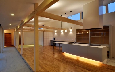 広々リビングと頼れる太い柱 はせがわきよし 長谷川建築設計事務所絵。