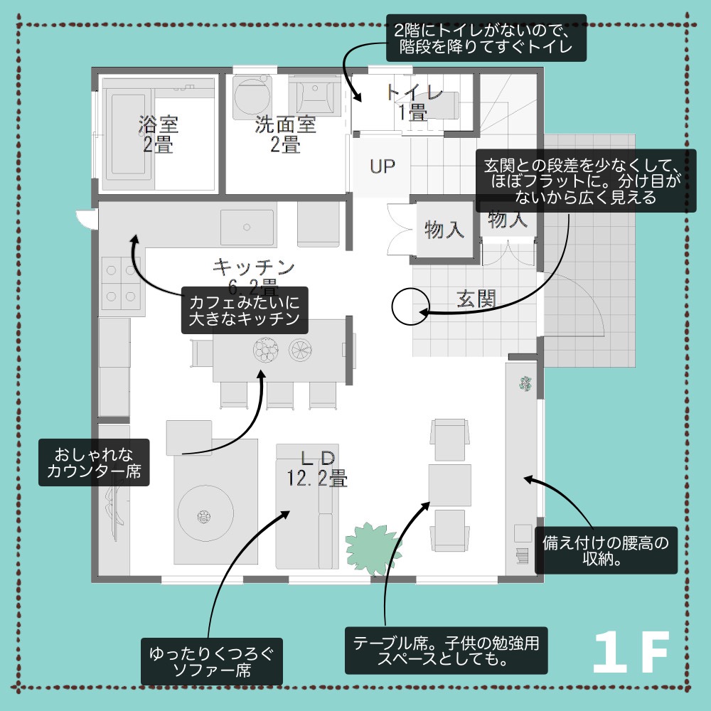今日はカフェのようなカウンターが素敵な ちょっと変わった平屋の間取りをご紹介します🙌 趣味がコーヒーのご家族さまからのご依頼でした☕️玄関を入ると右手に広がる土間に なんとカフェのようなカウンターが✨ 外を眺めながらゆっくりコーヒーを 楽しめそうですね。