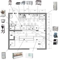 喫茶店の厨房レイアウトと設備飲食店開業・厨房機器の販売・修理・買取の近畿厨房。