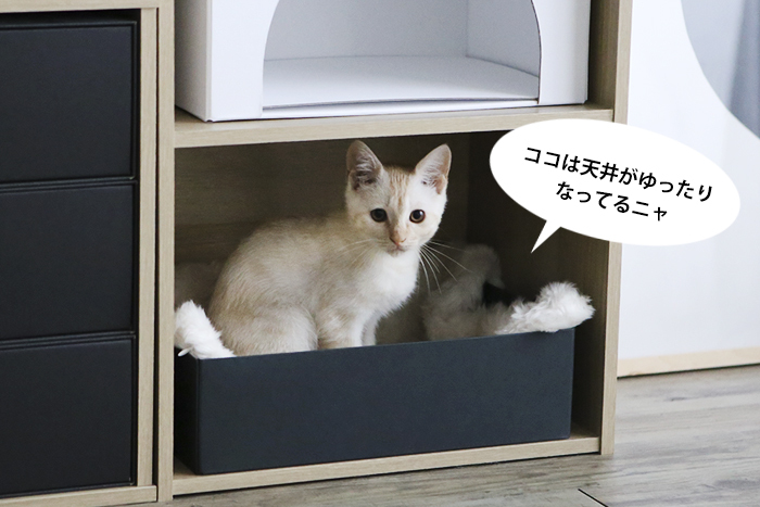 紙製収納ボックスにひと工夫!カラーボックスを子猫の遊び場&ベッドにする方法HOUSTO おウチの収納.com。