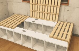 カラーボックスでベッドDIY!強度と通気性の工夫集家具キューブ。