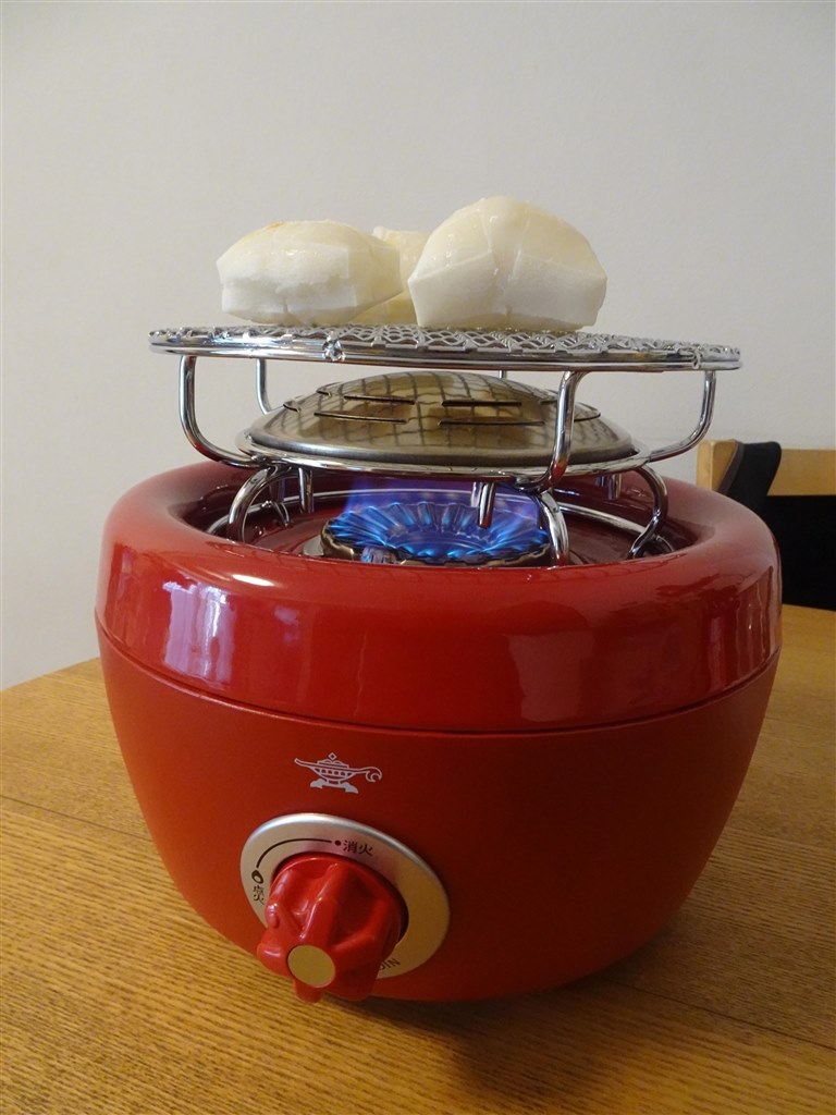 卓上火鉢でホタテのバター醤油焼き🍶, , 火鉢を眺めながらゆったりといただくホタテは絶品です。, ,遠赤外線で芯からじっくりあたためるので美味しく仕上がりますよ。, , hibako 本体のみ ¥26,400 税込 ,hibako用 スターターキット ¥6,600 税込 , セット内容, ⚪︎セラミック灰 4kg , ⚪︎オリジナル五徳, ⚪︎網, ⚪︎灰, ,。