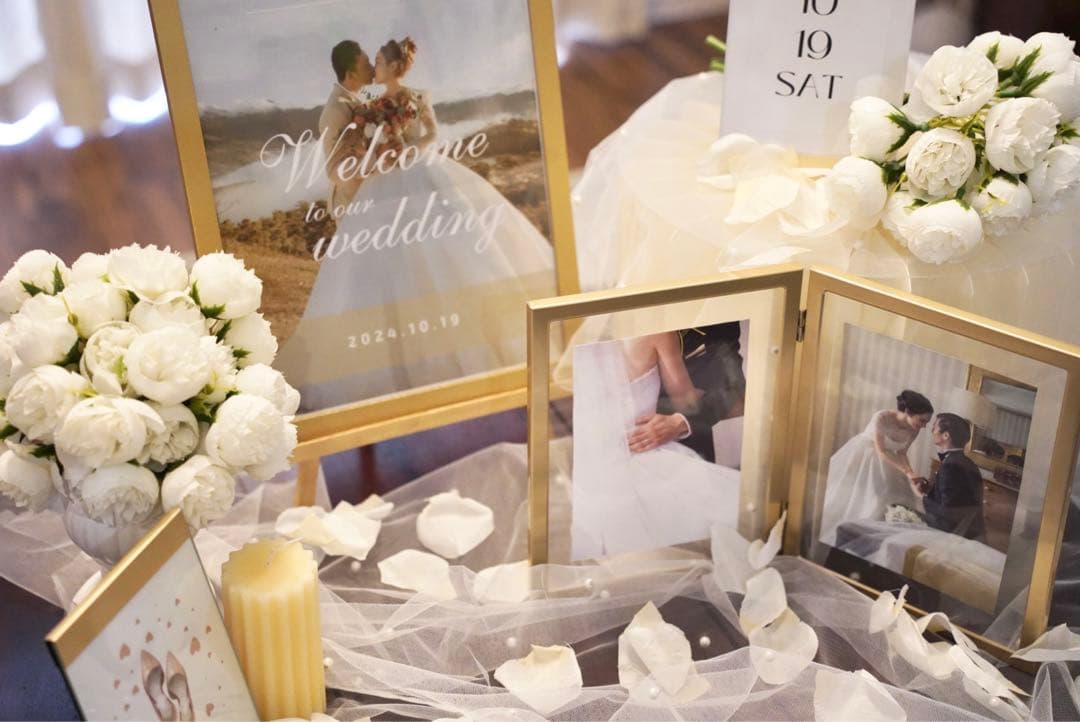 結婚式のウェルカムスペースアイテムがセットで揃う!写真を飾ったシンプルな装飾が人気│PIARY。