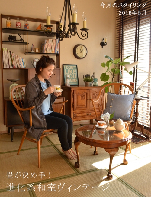 畳の部屋でアンティーク家具をコーディネート。