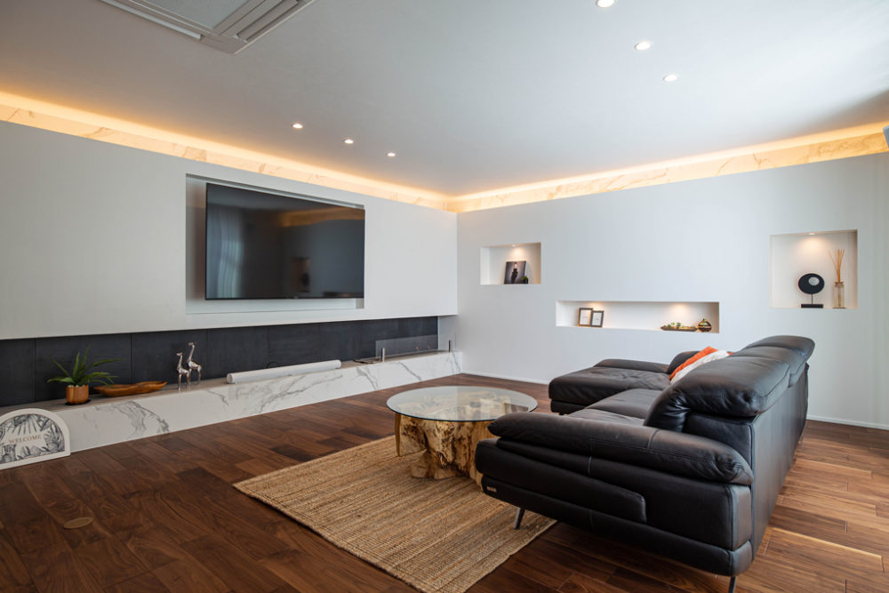 造作フロートテレビボードでつくる、広くて上質なリビング空間名古屋のオーダー家具とインテリアコーディネートなら LUFT 愛知県。