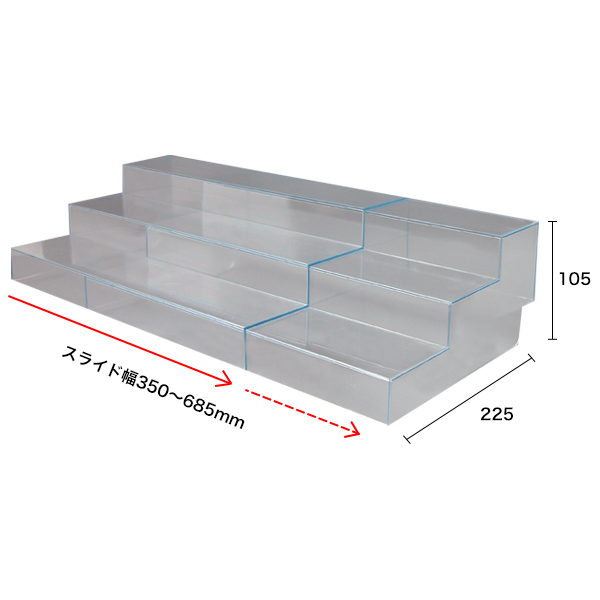 商品展示用アクリルひな壇 3段タイプ セミオーダーサイズ -サイン&ディスプレイ通販コモネット。