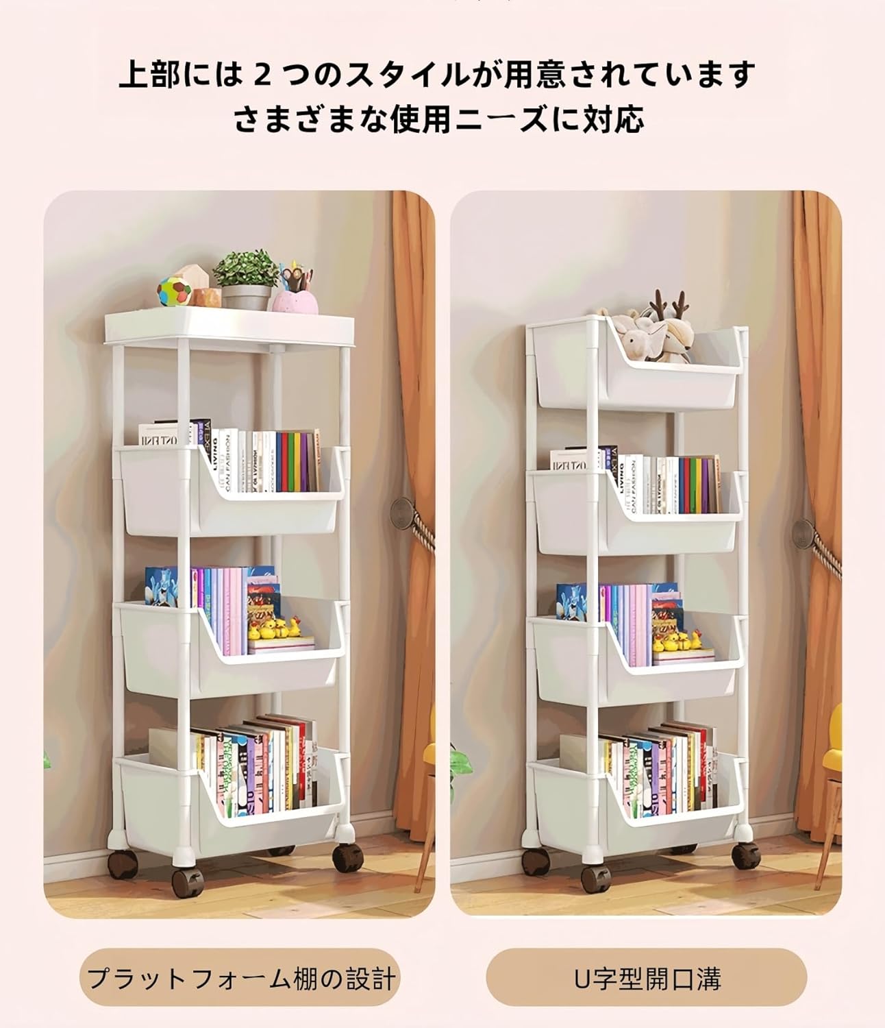 おもちゃ収納ラック 絵本棚 収納ボックス ワゴン 3段 4段 大容量 ワゴン キャスタ。