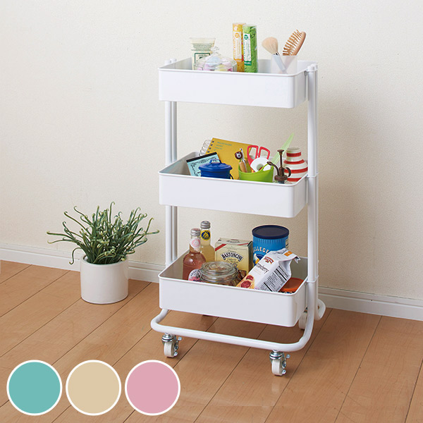 キッチンワゴン 収納ボックス ランドセルラック おもちゃ箱 おむつ オムツ入れ 取手付き キャスター付き おもちゃ収納 北欧 マルチ三段ワゴン 隙間収納GardenLife 〜おしゃれガーデニング雑貨通販。