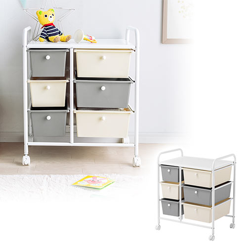 引き出し収納ラック ワゴン・ラック・キッズ・おもちゃ収納・モノトーン・キャスター・3段×2列・グレー・ホワイト激安通販のイーサプライEEX-HR10。