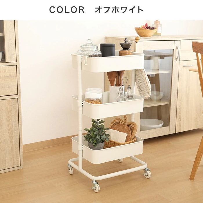 13cm 美容・コスメ・香水 キッチンワゴン 収納ラック キャスター付き 3段 フック付き キッチン おもちゃ。