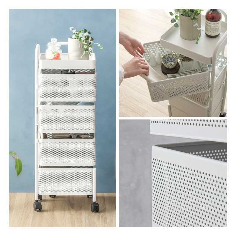 Amazon.co.jp: YQkasj 収納カート おもちゃ収納ラック キャスター付き キッチンワゴン バスケットトローリー 雑貨収納キッチンワゴン 移動式 おしゃれ メッシュ 収納カゴ 1段 メタルラック 防錆 小物収納 収納棚 北欧 白色 収納用品 ベッドルーム インテリア :。
