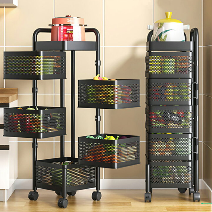楽天市場10 10限定P10倍+10%OFFクーポン! キッチンワゴン キャスター付き 5段 収納ワゴン 北欧 バスケットワゴン おもちゃ キッチン収納収納ラック 可動 回転 脱着可能 完成品 台所 果物 野菜 調味料 ラック おしゃれ スリム 隙間収納 キッチンストッカー 白 黒。