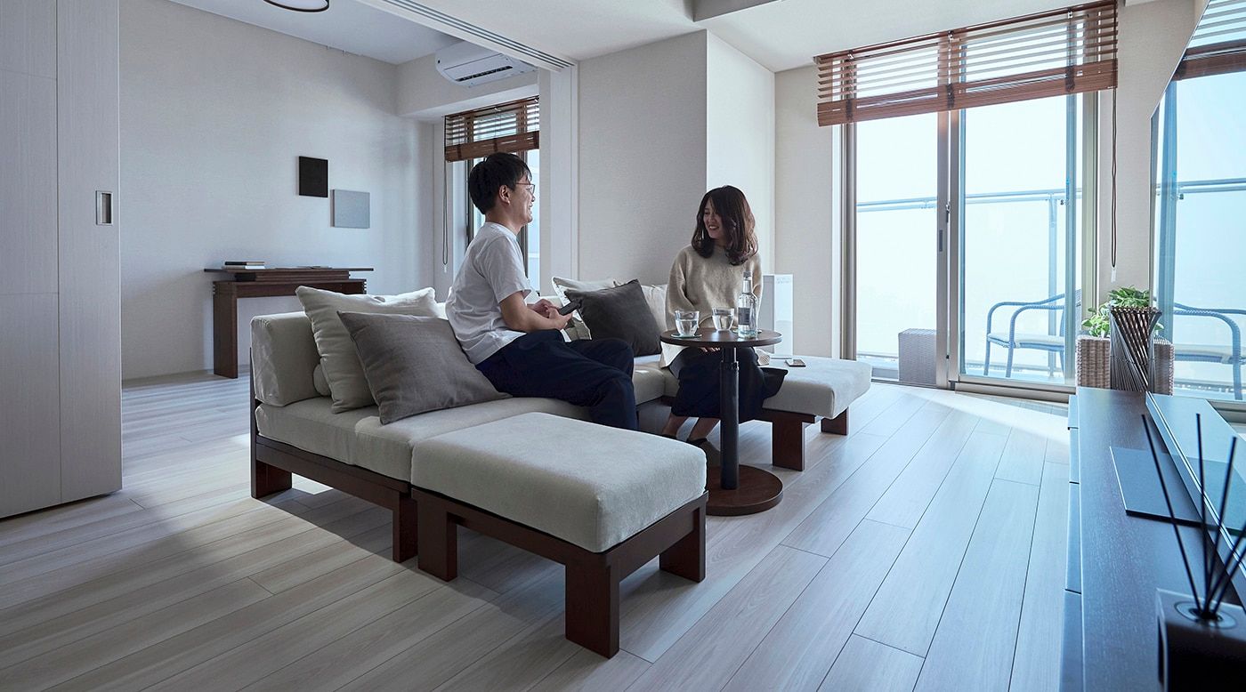 特集 12畳のリビングで叶えるおしゃれで快適なレイアウト術a.flat 風が運ぶ、自然の贈りもの -目黒通り・新宿・大阪梅田 グランフロント北館。