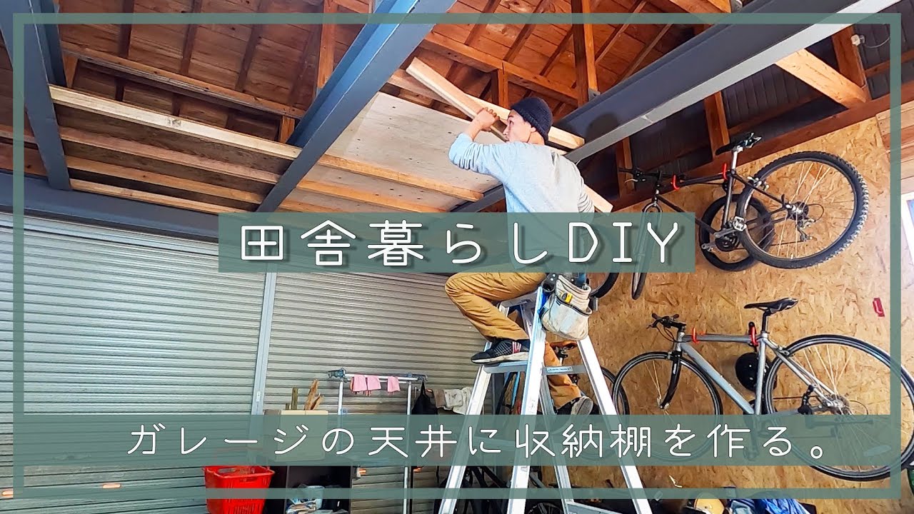 ガレージDIY ガレージの天井に収納棚を作る。 Garage田舎暮らしDIY棚空き家リフォームセルフリノベーション田舎移住生活宮崎えびの。