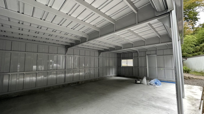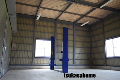 かっこいいガレージ・倉庫 天井高4.5mリフトのある鉄骨ガレージ。