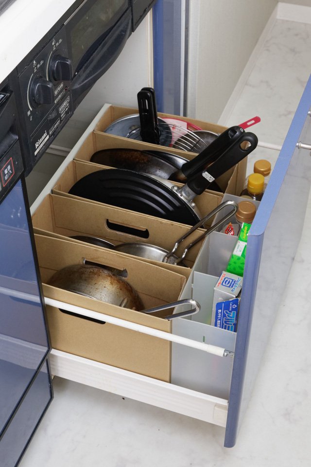 無印良品の紙製ファイルボックスを、あえてフライパン収納に使う理由ESSEonline エッセ オンライン。
