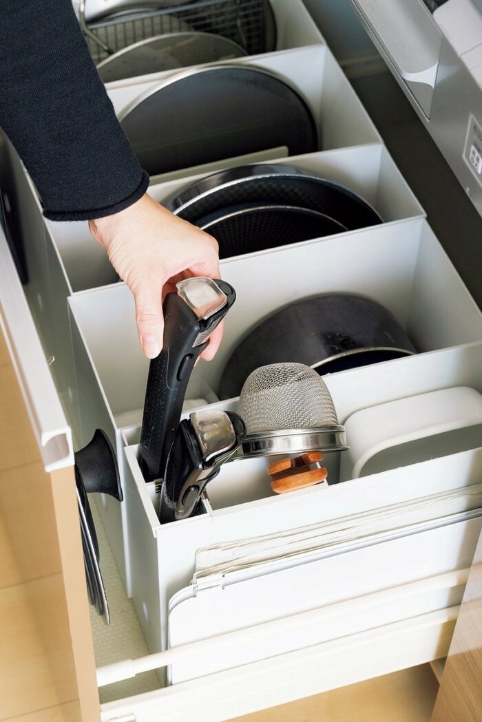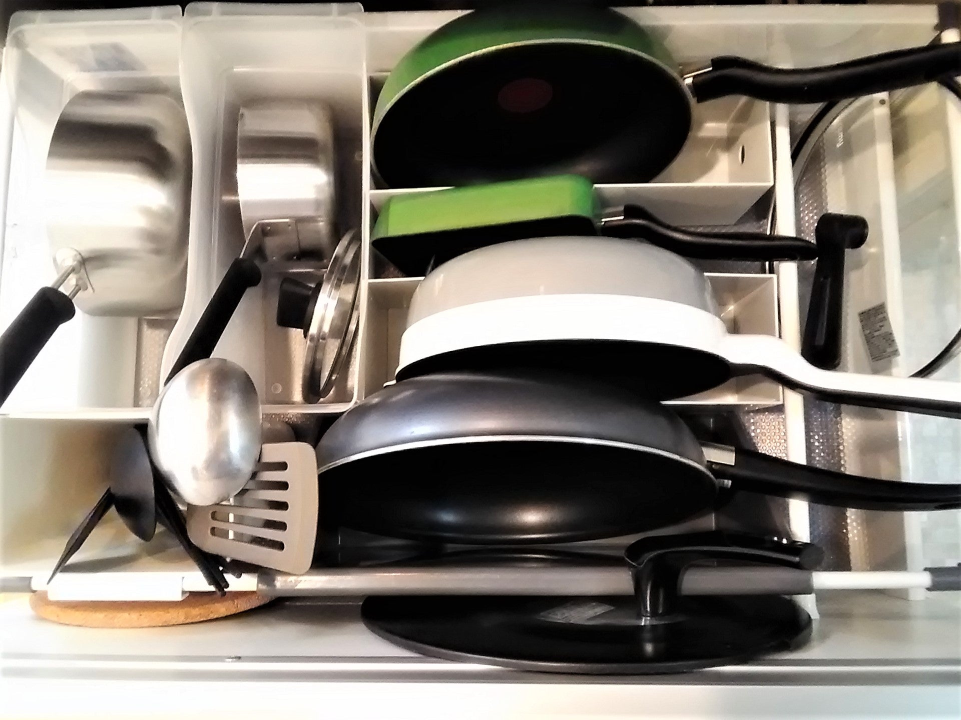 すっきり見せて出し入れしやすい☆フライパン・なべ・フタの収納アイデア2021年6月5日- エキサイトニュース。