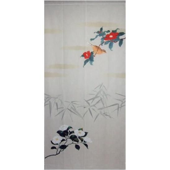 和風のれんタペストリー 冬椿W850xH1800mm ロング丈 - 店舗のれん 日除け幕のオーダー製作オリジナルのぼり旗の製作和雑貨等販売横浜 のれん物語。