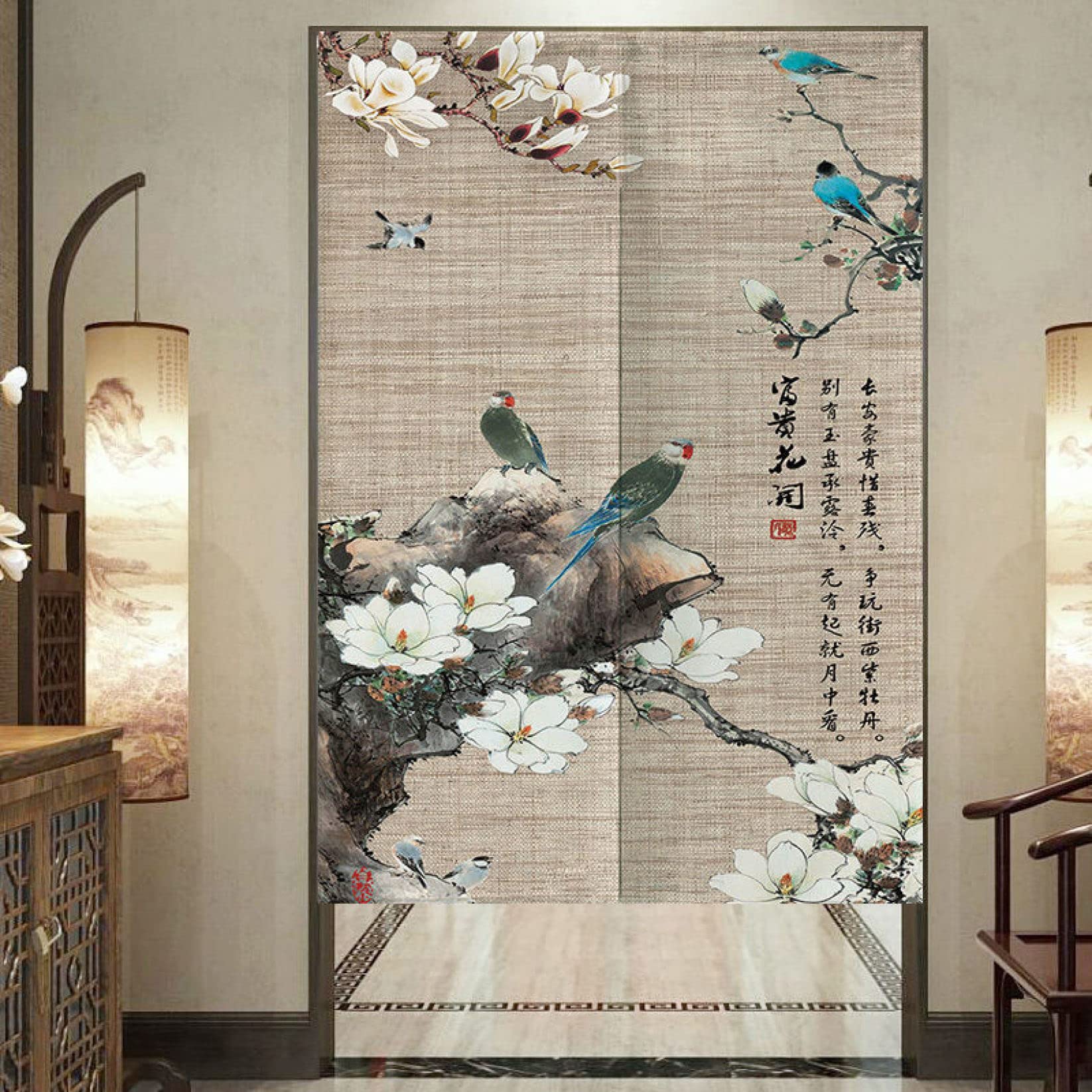 OFFクーポン のれん 和風 ロング のれん 花柄 間仕切り 植物 爽やか 90*150cm ドアカーテン 壁飾り 北欧 100*150cm 冷暖房和風暖簾 ロング暖簾 リビング 玄関 廊下 洗濯 着替え室 飲食店 新築祝い 厚手 エレガント 冷暖房 母の日 綿麻 年中使用 YJSO。
