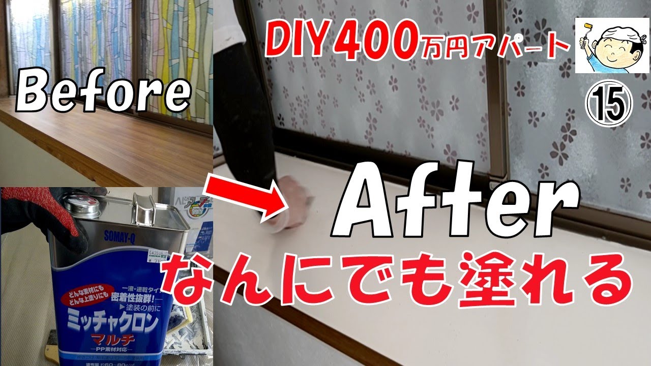 DIY 400万円アパート!⑮なんにでも塗装できる便利なプライマー!出窓のツルツル天板に足付け無しで塗ってみました。45日後・おじさんの挑戦。