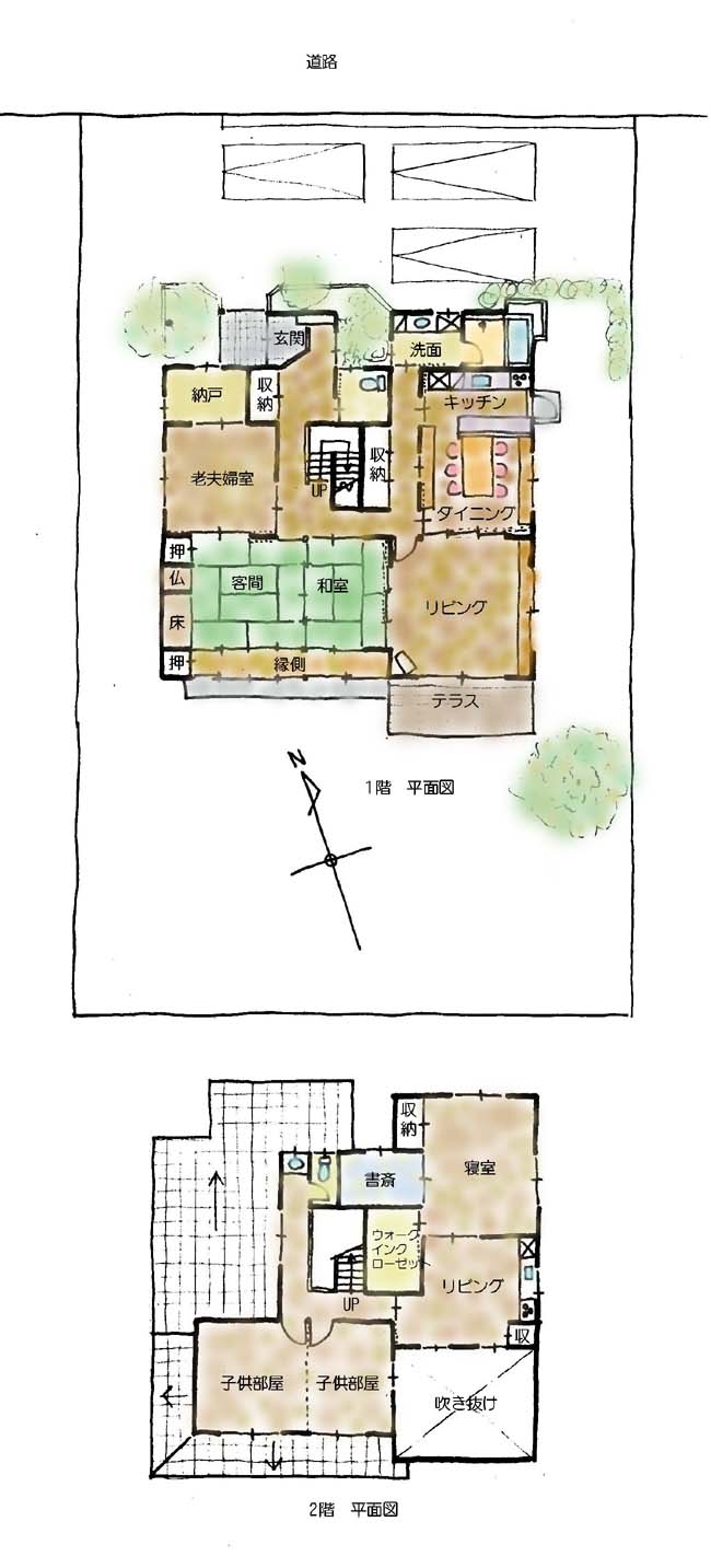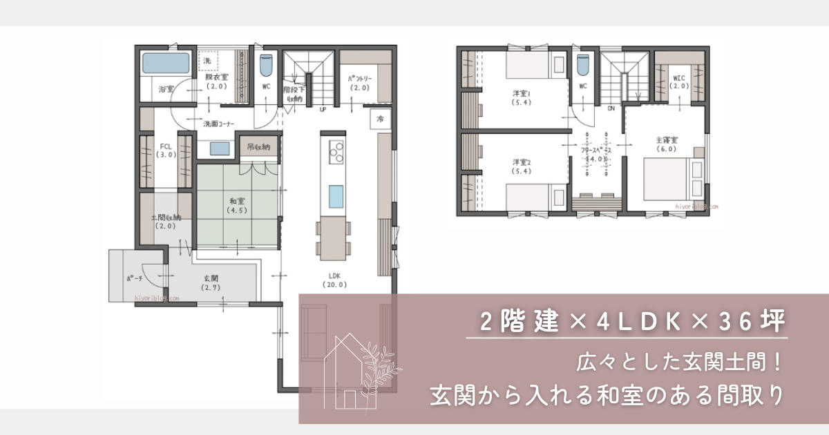 2階建×4LDK×36坪玄関から入れる和室のある間取り咲くくらし。