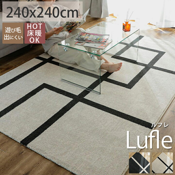 ウィルトン織 ラグ ウィルトン カーペット おしゃれ 北欧 正方形 4.5畳 大きめ おおきい 柄 デザイン リビング シンプル モノトーン 白黒じゅうたん ラグマット ベルギー製 ホットカーペット 床暖房対応<ルフレ 約240x240cm>ラグ&カーペット専門店ラグリ。