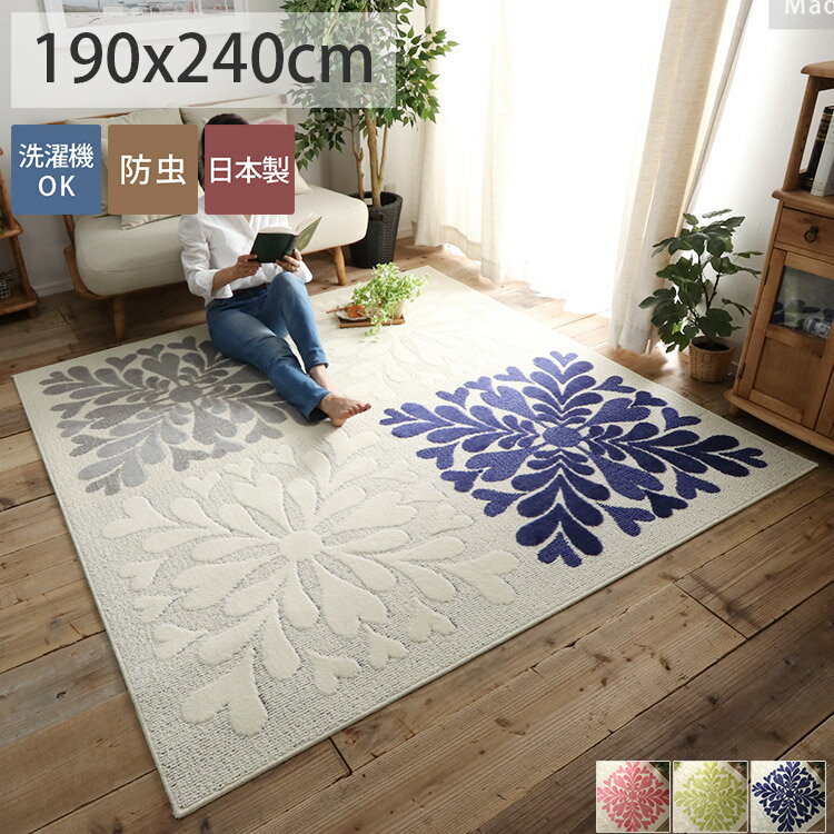 在庫限り ラグマット ラグ カーペット 北欧系 絨毯 長方形 じゅうたん 3畳 三畳 洗える ウォッシャブル 北欧 おしゃれ 柄 かわいい 日本製ハート 防ダニ 抗菌 消臭 オールシーズン 通年 床暖房対応 アイボリー グリーン ピンク<ココット 約190x240cm> - 通販家具と。