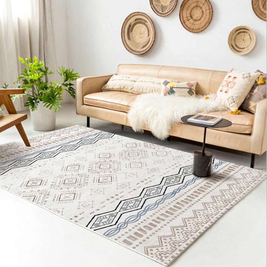 ラグマット ラグ カーペット 北欧系 室内マット ベルギー風 じゅうたん 1畳 1.5畳 洗える ウォッシャブル 北欧 おしゃれ 幾何柄 モダンシンプル 耐摩耗性 耐汚性 オールシーズン 防滑 部屋 リビングルーム YJSO。