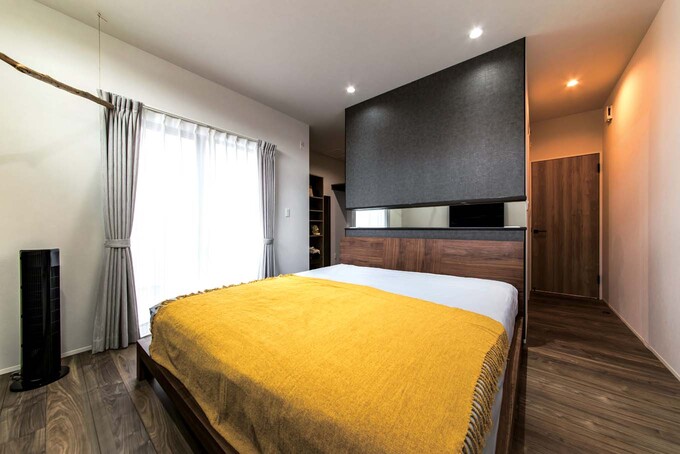 3帖のWICを設け、室内をスッキリ美しく演出した主寝室 - 事例写真「愛車を眺めながら夫婦の時間を楽しむ家」注文住宅のハウスネットギャラリ。