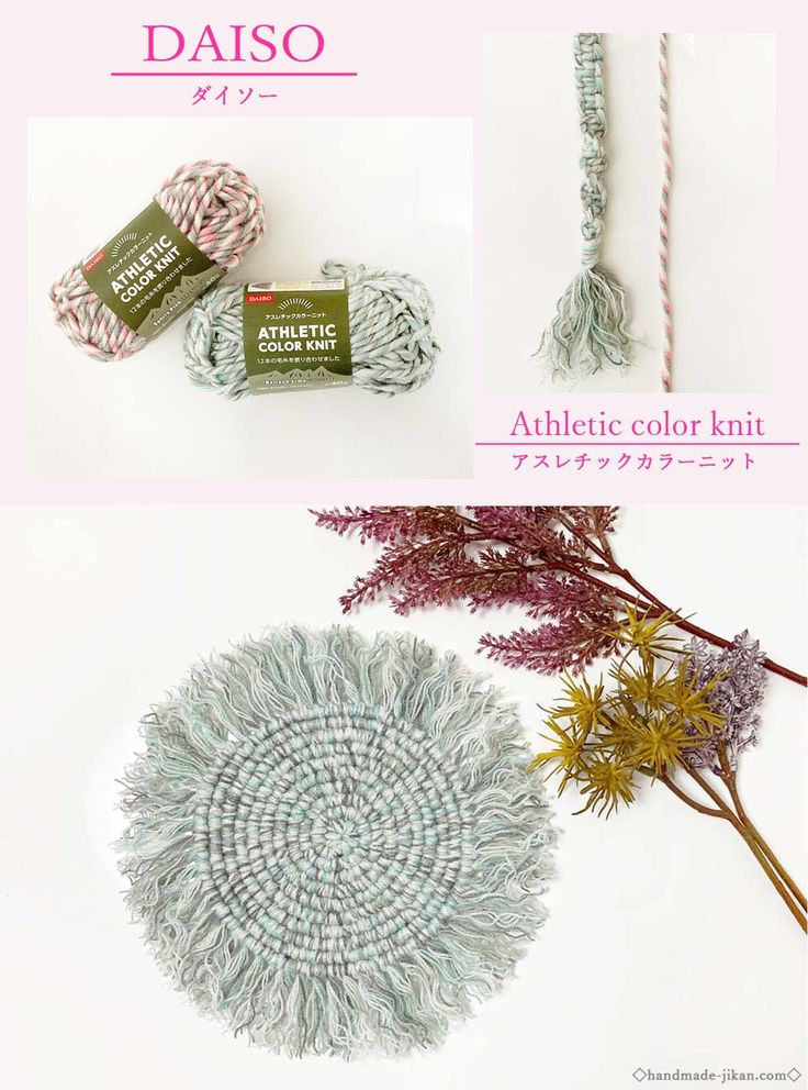 アスレチックカラーニット ダイソー でハンドメイドしたマクラメコースタ。