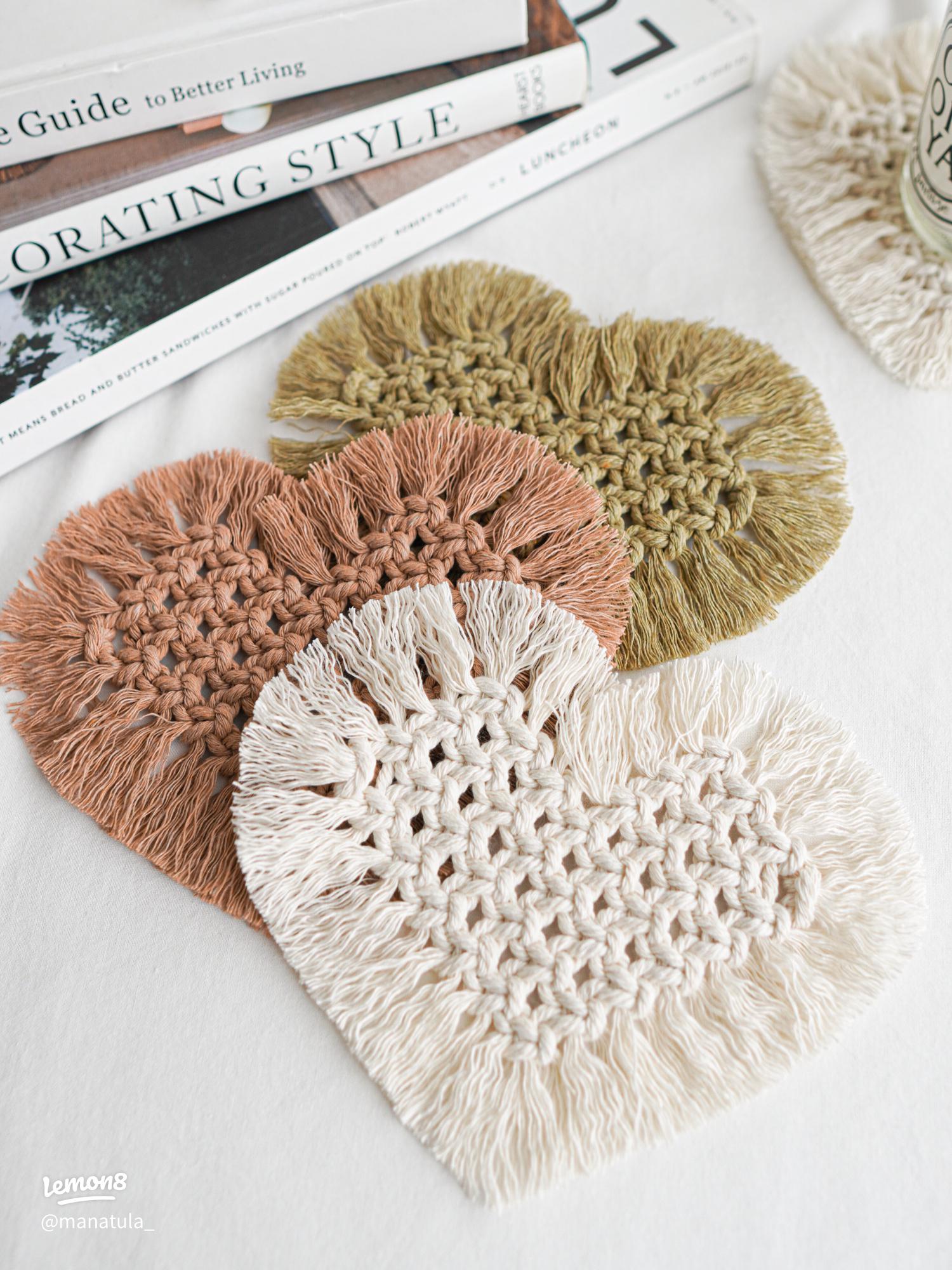 簡単 マクラメ ハートコースターの作り方♡バレンタインの季節にも🍫✨。