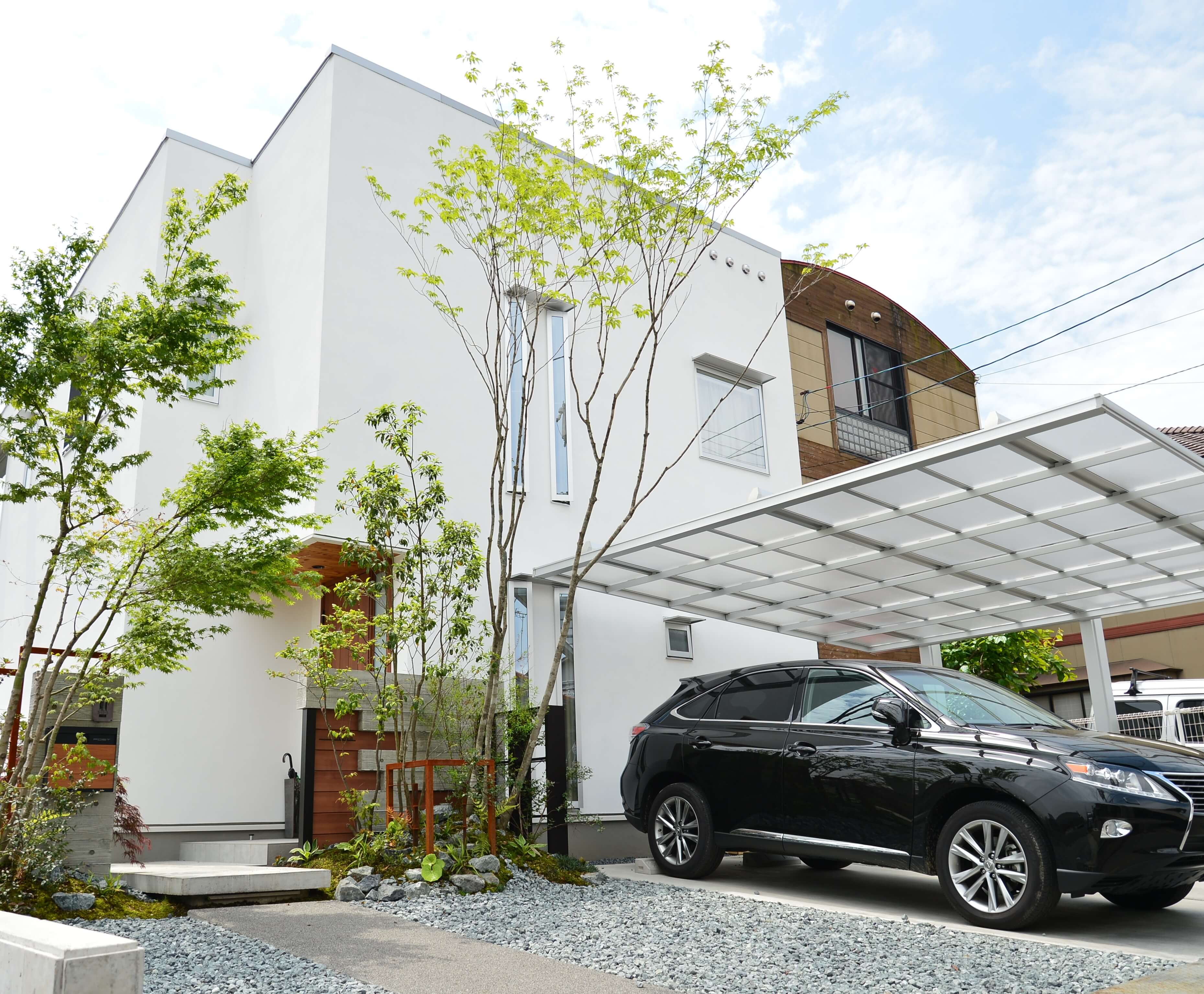 新築のエクステリアにぴったりな駐車場 ◇お庭の実例 - 福山市の外構 、エクステリア、庭のデザインと施工なら。ロケーションのある暮らしを。そらやLandscape。