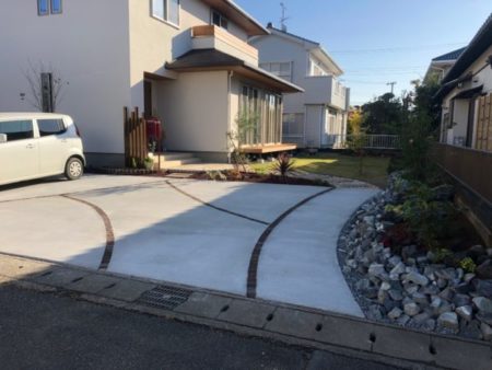 駐車場コンクリート デザイン性あり使いやすさも重視岐阜県 多治見市 K様邸 - 楓林庭多治見・土岐・瑞浪・可児のエクステリア外構工事。