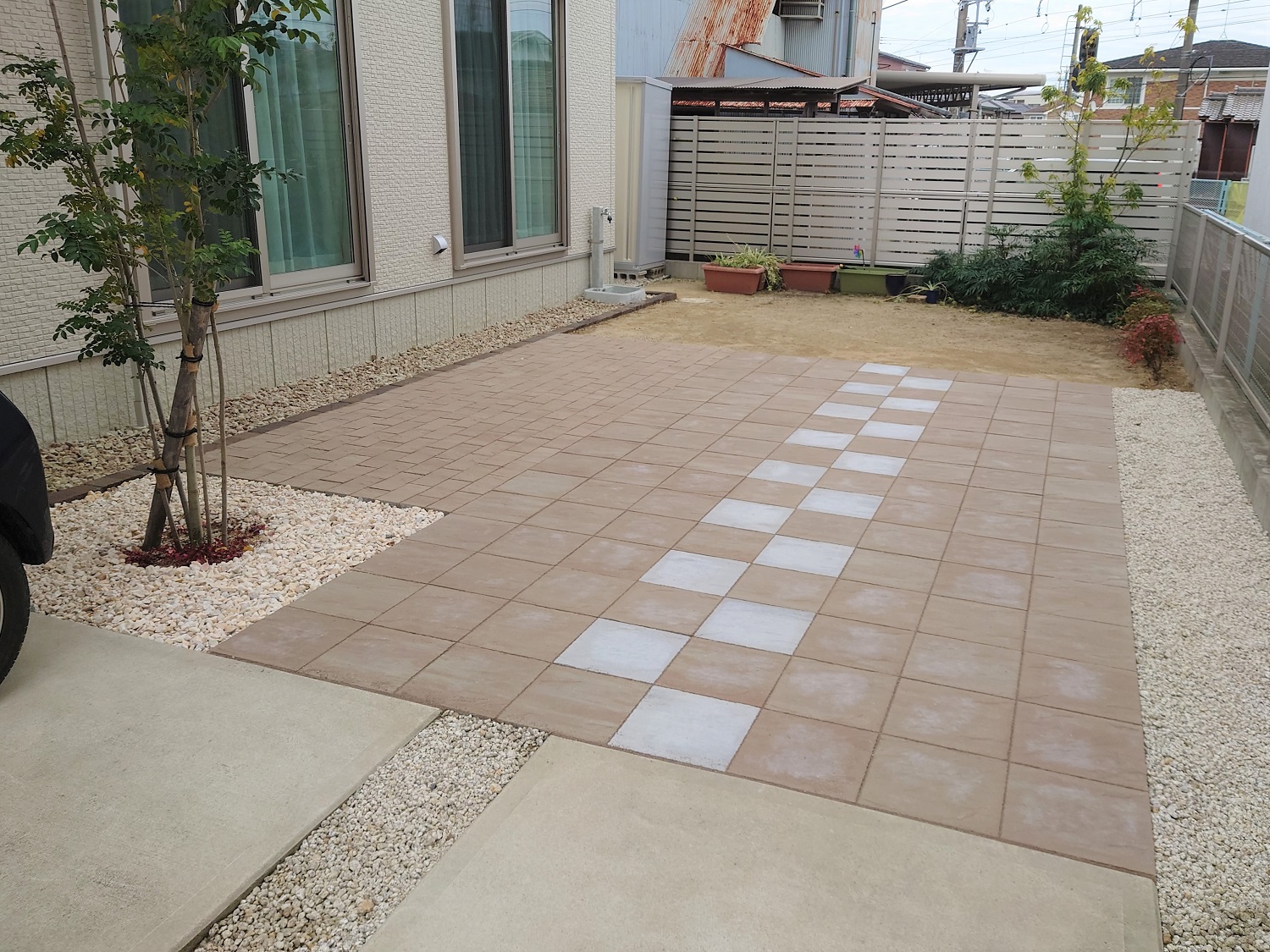 姫路市新築外構・舗装材『グラディエ』と『ムーブ』を使ったカッコいいオープン外構!姫路市外構 ガーデン エクステリアアセンブルガーデン。