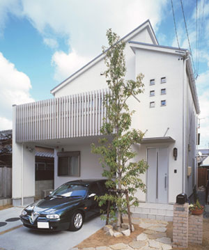 オシャレな駐車場があるエクステリア外構とエクステリア施工例。