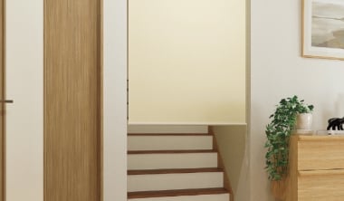 階段の仕切りをしっかりやって、暖房効率をアップ。