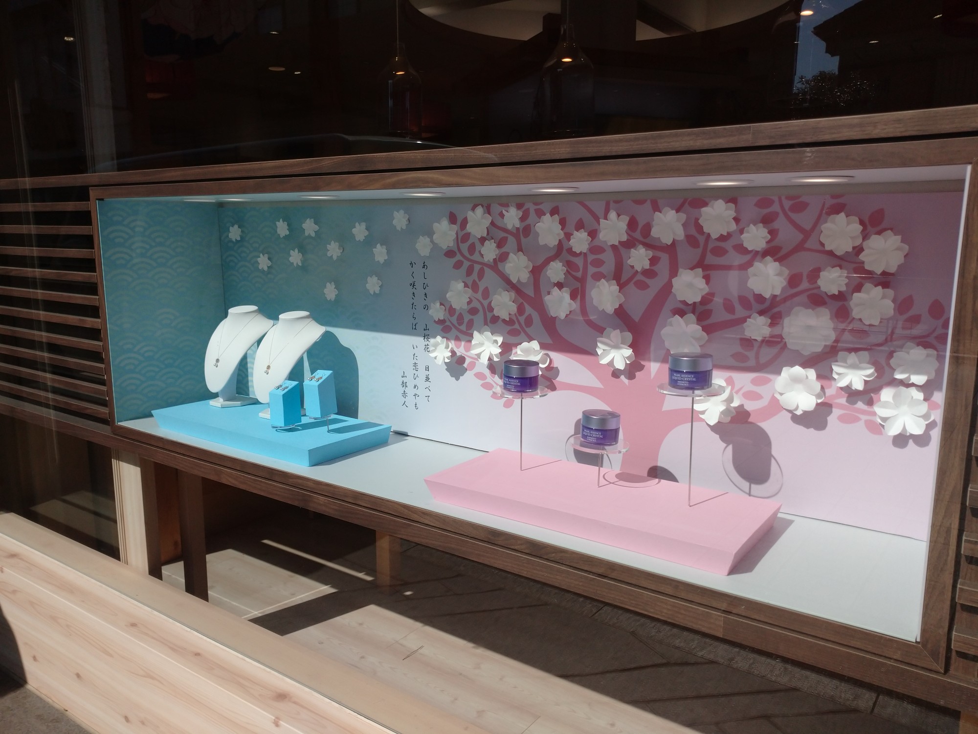 店頭ディスプレイが春仕様に変わりました! 十二単衣をイメージした色鮮やかなデザイン。 見ていて華やかな気分になれます🌸あこや真珠を使用したジュエリーや、ダウンズタウンとコラボしたオリジナル商品 伊勢美人ハンドクリーム を飾っています✨伊勢美人本舗。