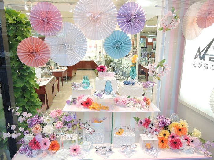 お花たくさん*´艸` 春のメインディスプレイ ニュース&ブログ めがねの荒木:横須賀 逗子 葉山 久里浜のメガネ 眼鏡補聴器 サングラスコンタクト。