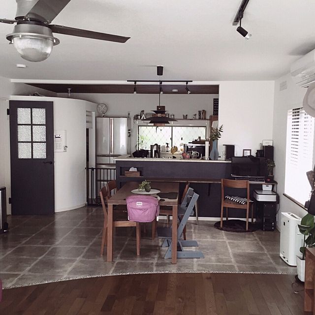 水回りのキッチンとリビングの床を切り替えました。床材によってガラリと雰囲気が変わりますね。リビング キッチン 床マイホーム マイホーム計画中 新築 暮らし 注文住宅 住宅 デザイン 空間 タイル 南丹市 亀岡 亀岡市 京都府。