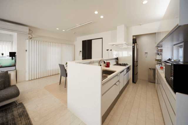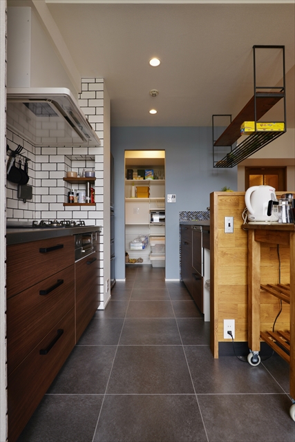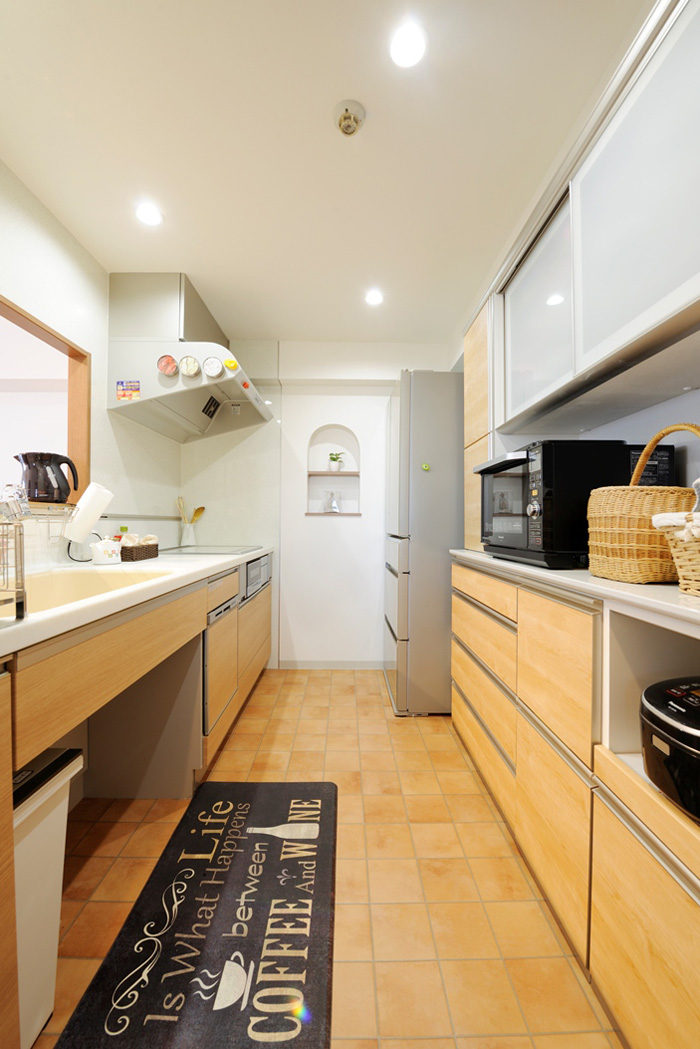 おしゃれで清潔なタイル床のキッチン東京・千葉のリノベーション事例中古マンション・戸建てリノベーション&リフォーム。