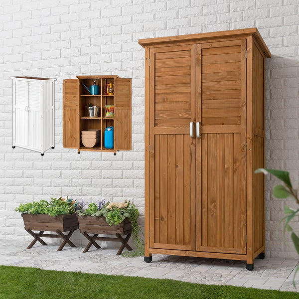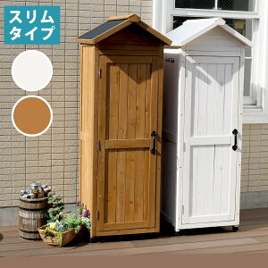 物置 屋外 収納庫 木製 奥行40 収納棚 おしゃれ スリム ベランダストッカー 玄関 庭 屋外収納 屋外物置 倉庫 ベランダ収納庫 扉付きライトブラウン ホワイトBuyee。