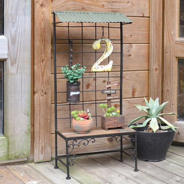 ガーデンスタンド 万能スタンド ルーフネットプランター フラワースタンド 木製 園芸 収納プランター 鉢置き プランタースタンド 花台 庭テラス アンティーク風 玄関先 屋外 木 スチール 台 ラック おしゃれ。