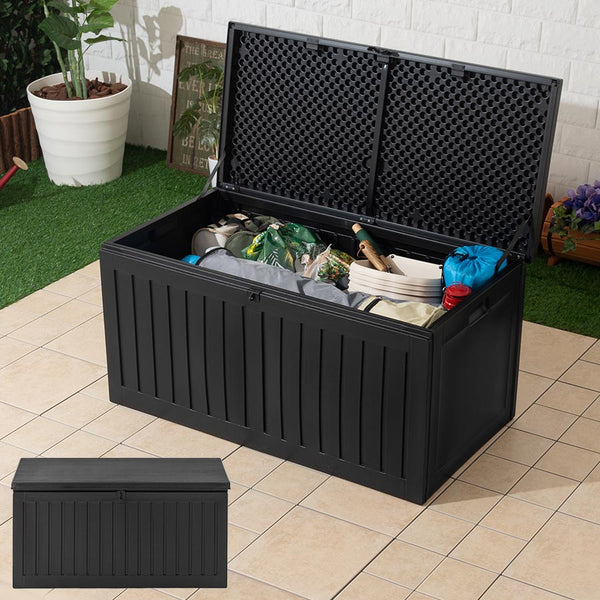 屋外物置 防水 おしゃれ プラスチック製フットパッド付き 屋外収納ケース ベンチ 換気シャッター ベランダ 収納 大容量 組立簡単 楽天市場 屋外収納ストッカー屋外収納庫 屋外用物置 収納ボックス 収納庫 ストレージ コンテナ ボックス 物置 樹脂製 防水 座れる収納。