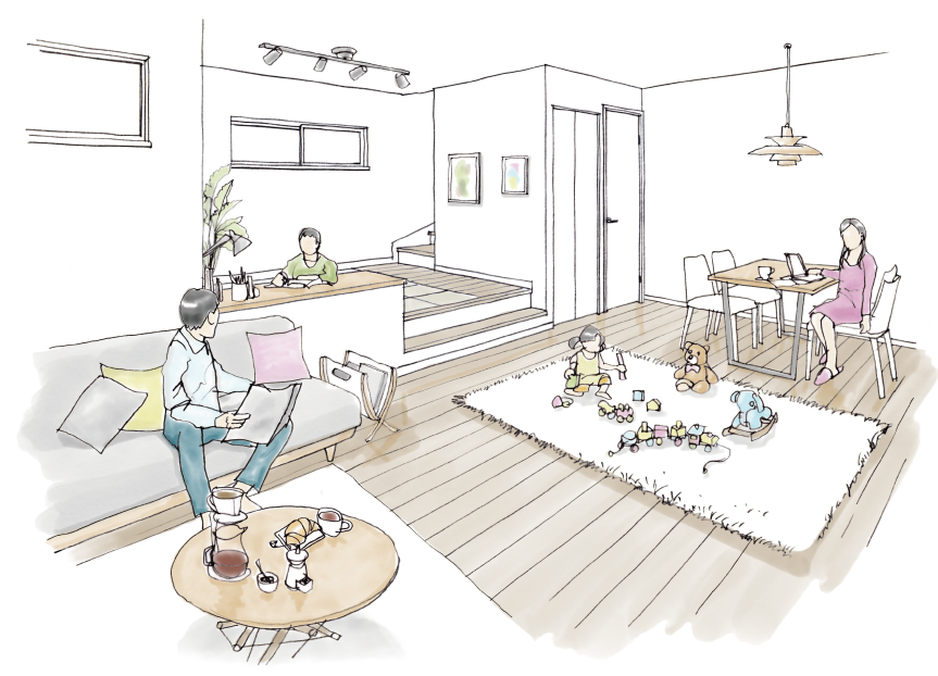 ご家族x理想の家イラストプレゼント – ウッドホーム㈱ WOOD HOME。