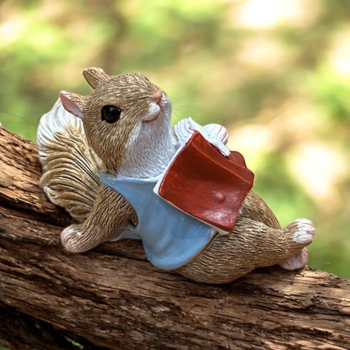 ミニチュアアニマル リス 読書 一休み 小さな動物の世界 置物 オブジェ インテリア プレゼント ギフト かわいい 癒し 手のひらサイズEV17681A-ピノポチ。