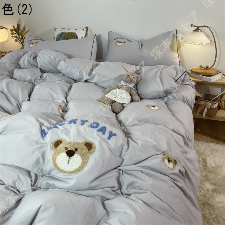 布団カバー セット ベッドカバー 寝具セット 枕カバー おしゃれ 北欧風 柔らかい 可愛い 四季通用 防臭 防ダニ 洗える 4点セットxz0523 布団 カバー 4点セット かわいい刺繍熊 ベッドカバー 枕カバー 柔らかい 寝具カバー コットン 姫系 ダブル 和風 通気性 シングル。