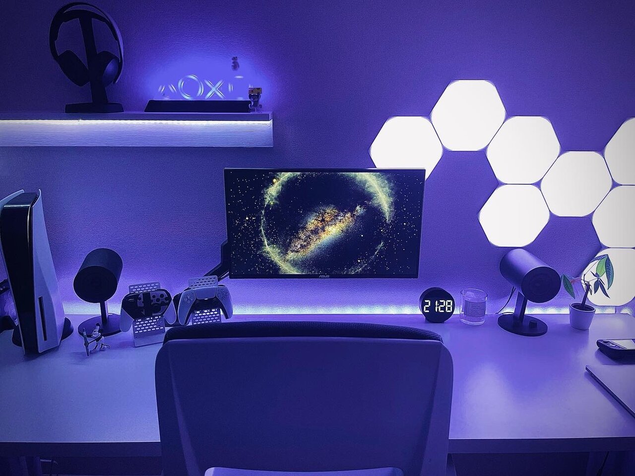ライト ゲーマー オシャレ部屋 インテリア ネオン 白 ホワイト を基調としたゲーム部屋に必要。